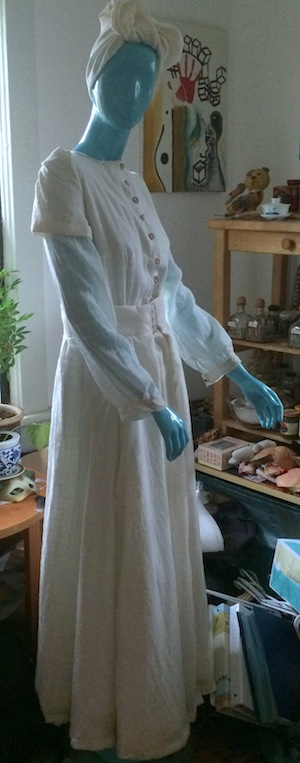 "Zenobia", now on display at NAAM. Hand made cotton gauze dress with head wrap.